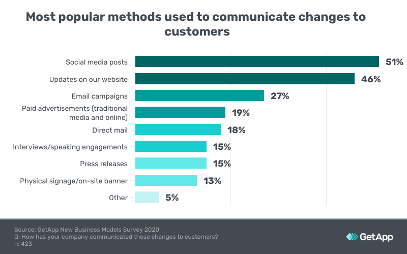 - Half of SME owners (51%) use social media to communicate changes to customers.
